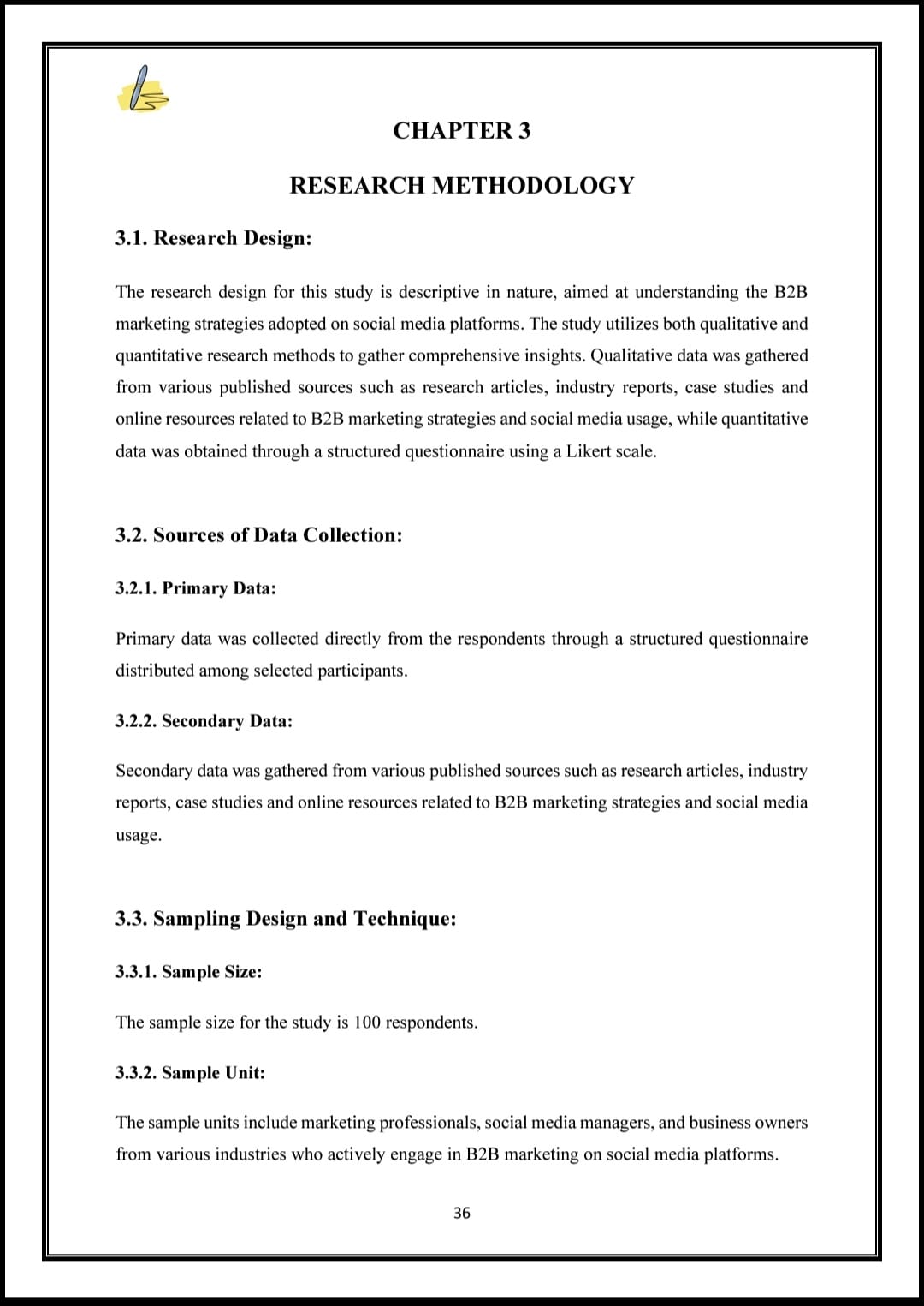Research Methodology: This section provides the methodology that is adopted by a student to conduct the study.