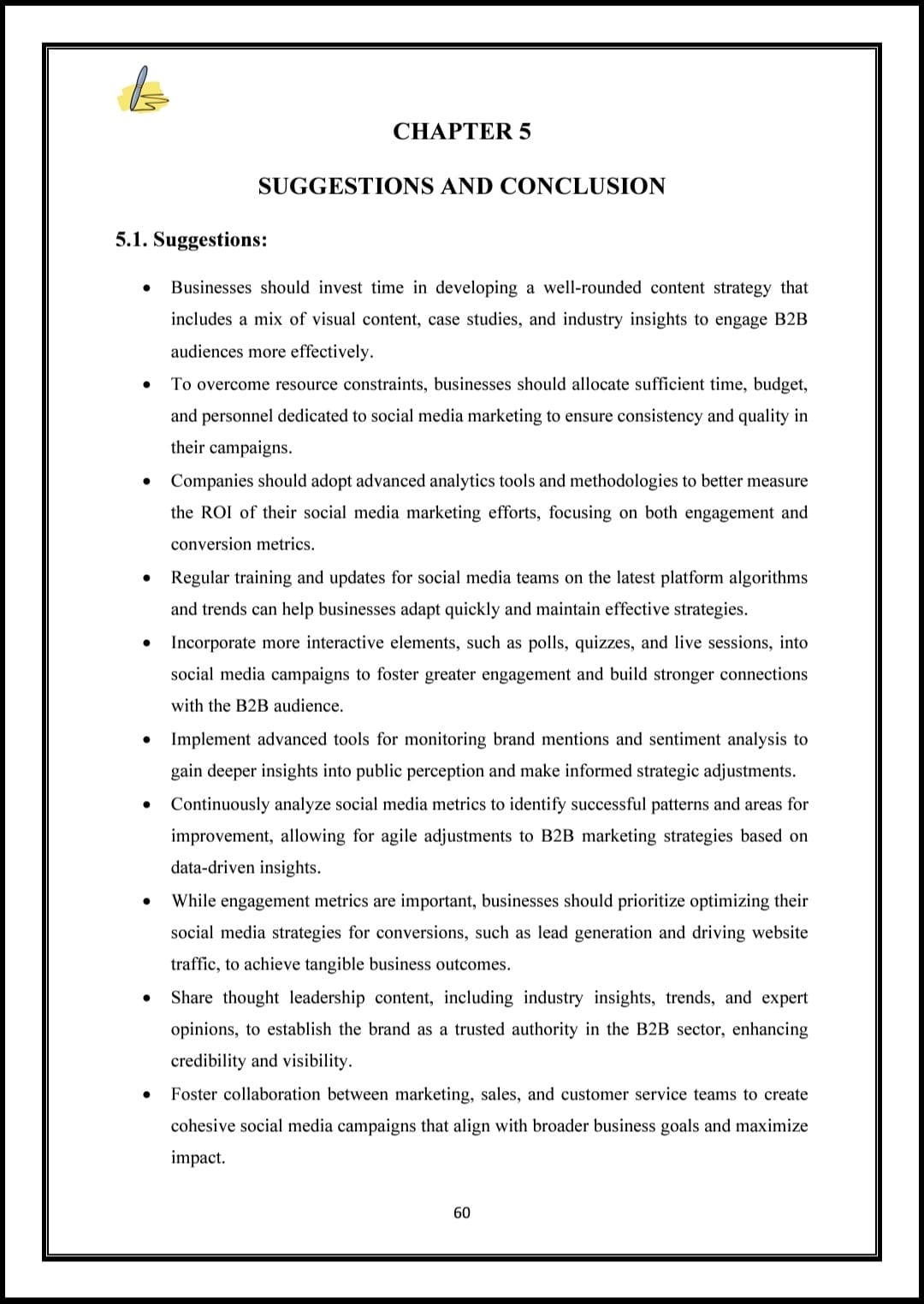 Findings, Suggestions and conclusion: This section will thoroughly explain the results obtained from the analysis. Suggestions based on the findings. Final Conclusion drawn from the Study.