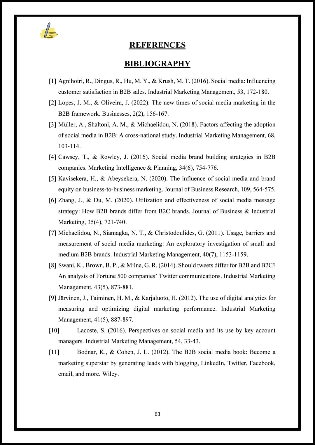 Bibliography: This section contains all the references that the student has used while completing the Project Report.